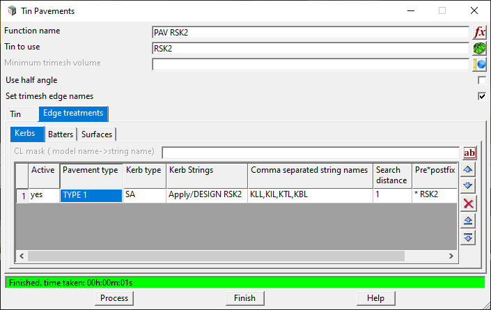 For Edge Treatments, you need to nominate the Model and Strings to use in the correct order.  Below is an example for doing a kerb.