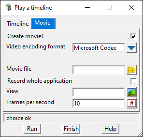 • Tick on to record a movie (*.avi file) of the selected timeline.