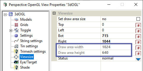 In the left-hand tree, select Viewsize.  Then change the Top, Left, Bot, Right values so that the Draw Area Width & Height values are multiples of 64.