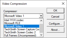 • Note: Use Full Frames (Uncompressed) with caution.  Some operating systems and/or software have restrictions on the AVI file size.