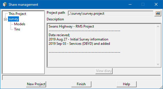 Access to the “Project Description” can also be made via the “Project Diary” which is intended to keep a more detailed record of changes and progress of the project over its life time.