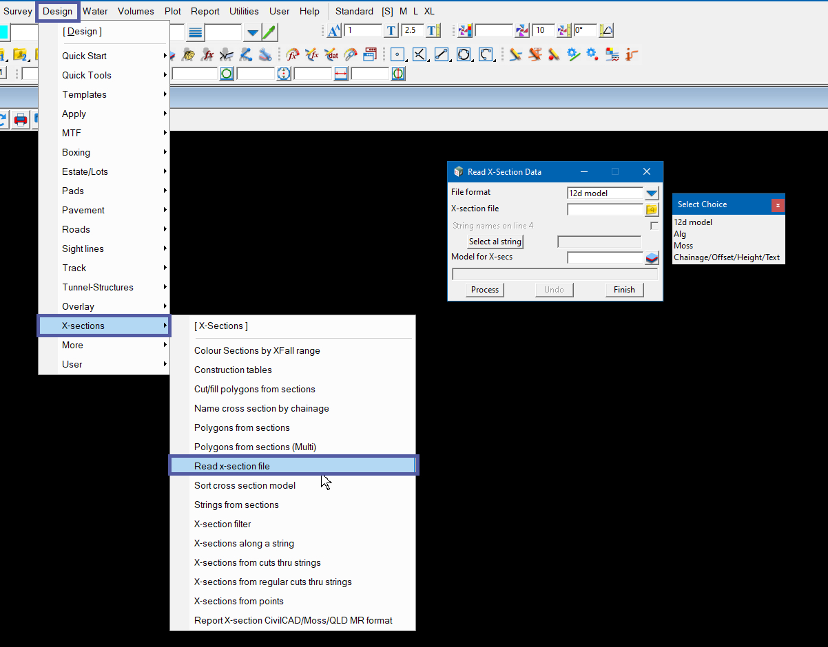 To view the panel, Use: Design =>X-Sections =>Read x-section file