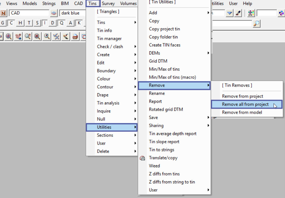 Use: Tins => Utilities => Remove => Remove All from Project