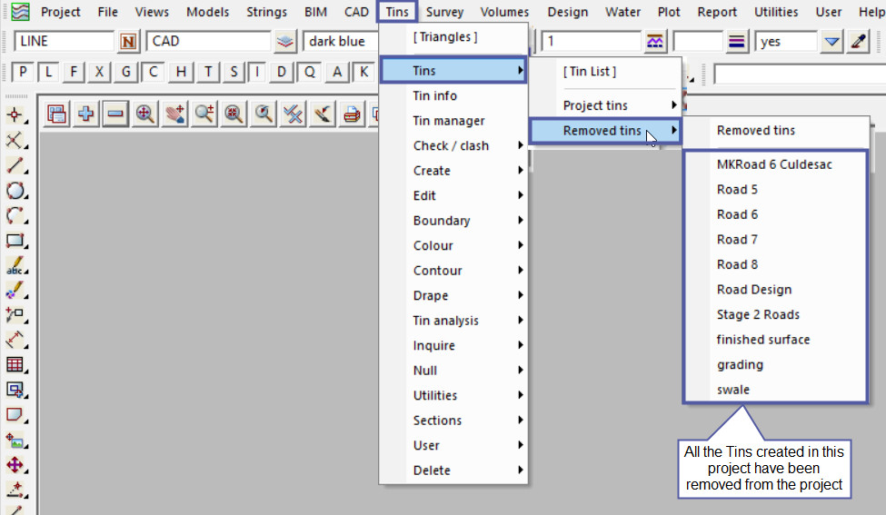 This option is used to Remove all Project Tins from the project.