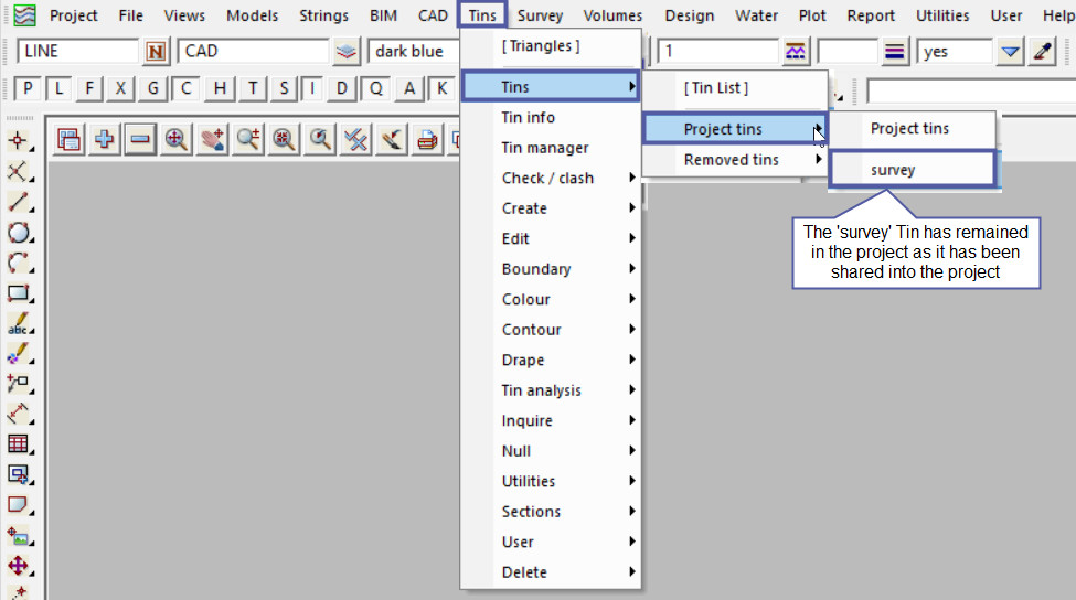 Note: The ‘survey’ tin has remained in the project as  it was not created in this project, it has been shared into the project from another project.