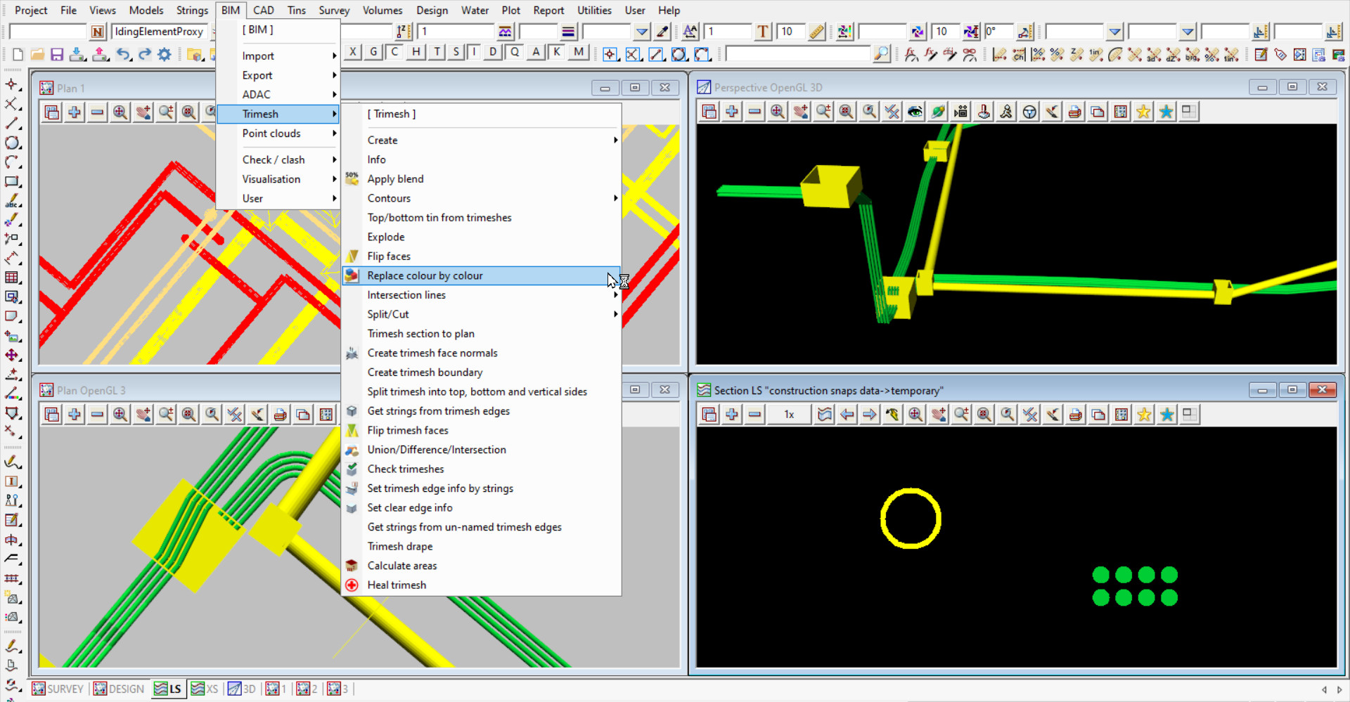 The example I show below is to change Trimesh Face colours that have been imported into 12d via an .ifc file format.