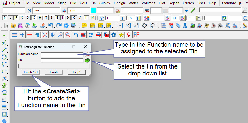 To view the Retriangulate Function Panel, Use: Tins => Create => Function