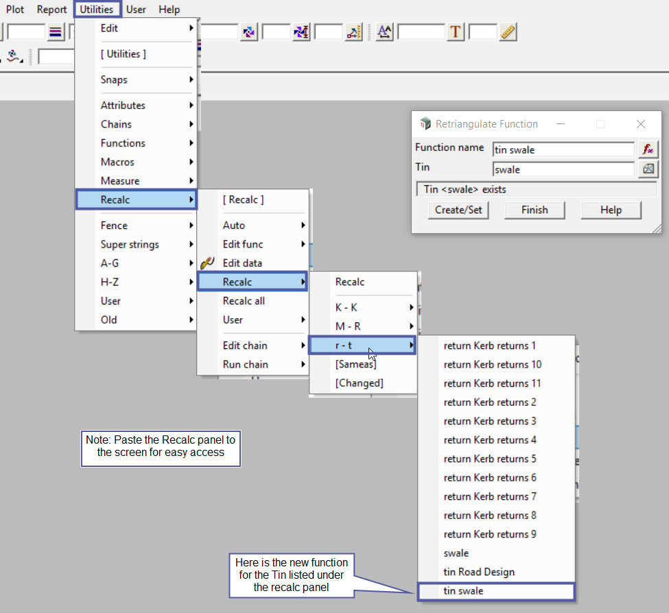 The image below shows that the function name has been assigned to the tin, as it is now listed in the list of functions for the project, shown under the Recalc menu or panel.