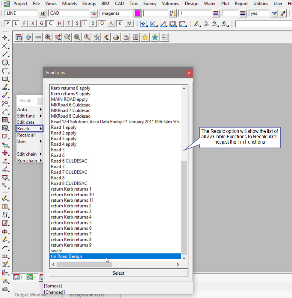 This option is used to Retriangulate/Recalc a Tin without opening a panel.