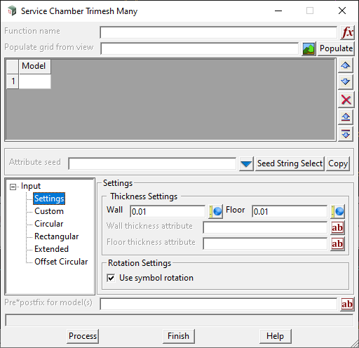 - Set the Wall and Floor thickness, or enter Attribute names.