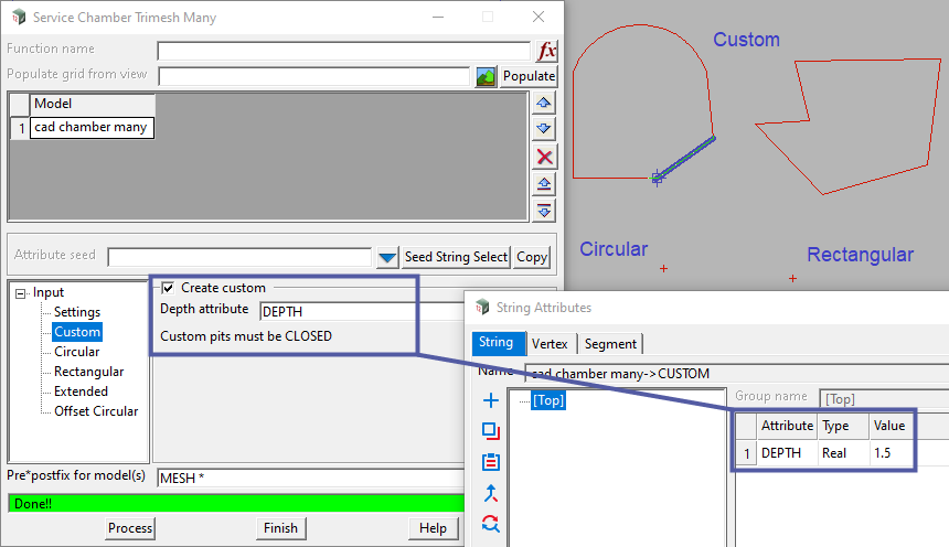 Points defining different pit types can be in the same Model. The type of chamber created will be determined by the relevant attributes.