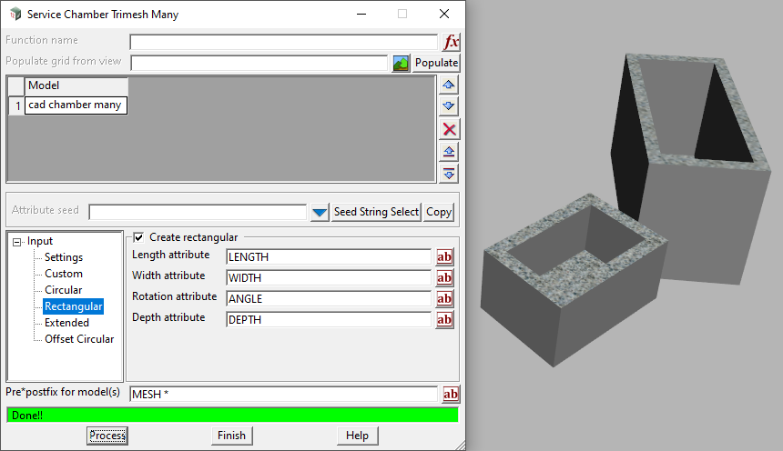 BIM=>Trimesh=>Create=>Service Chamber Many