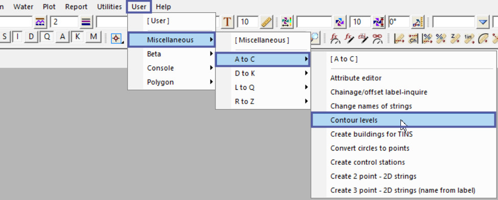 Select: User => Miscellaneous => A to C => Contour levels (this option is now superseeded) with the “Utilities => H-Z => Set Heights for 2d Super Strings” panel.
