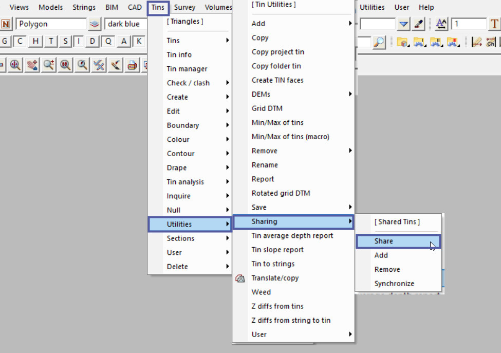 To view the Share Project Tins Panel, Use: Tins => Utilities => Sharing => Share