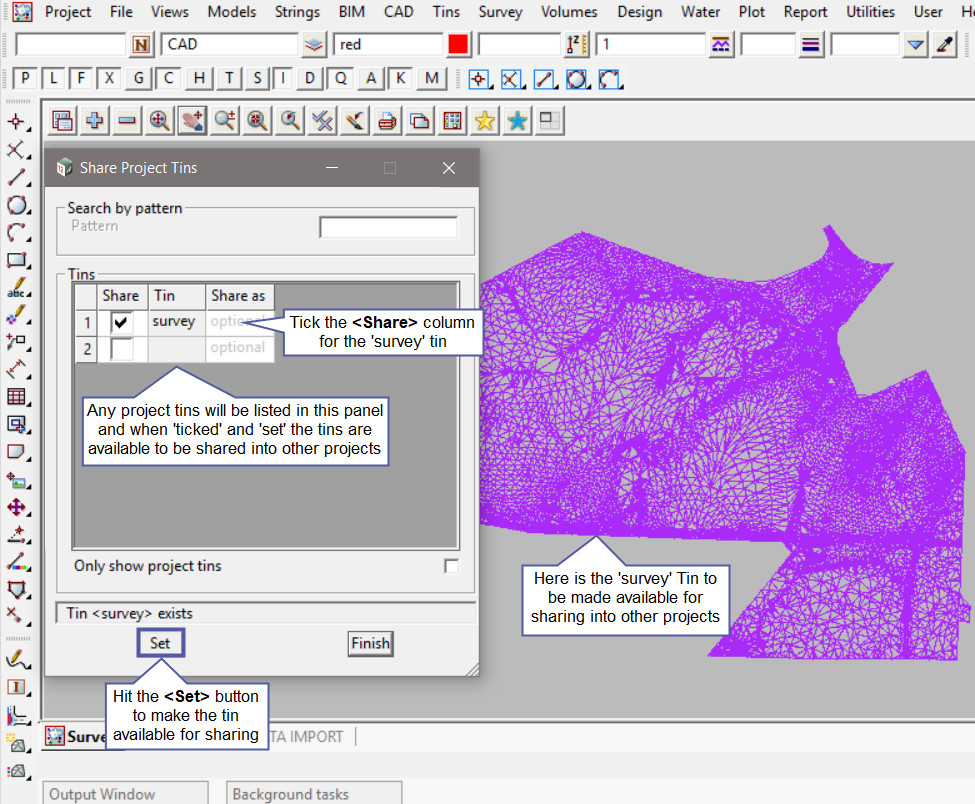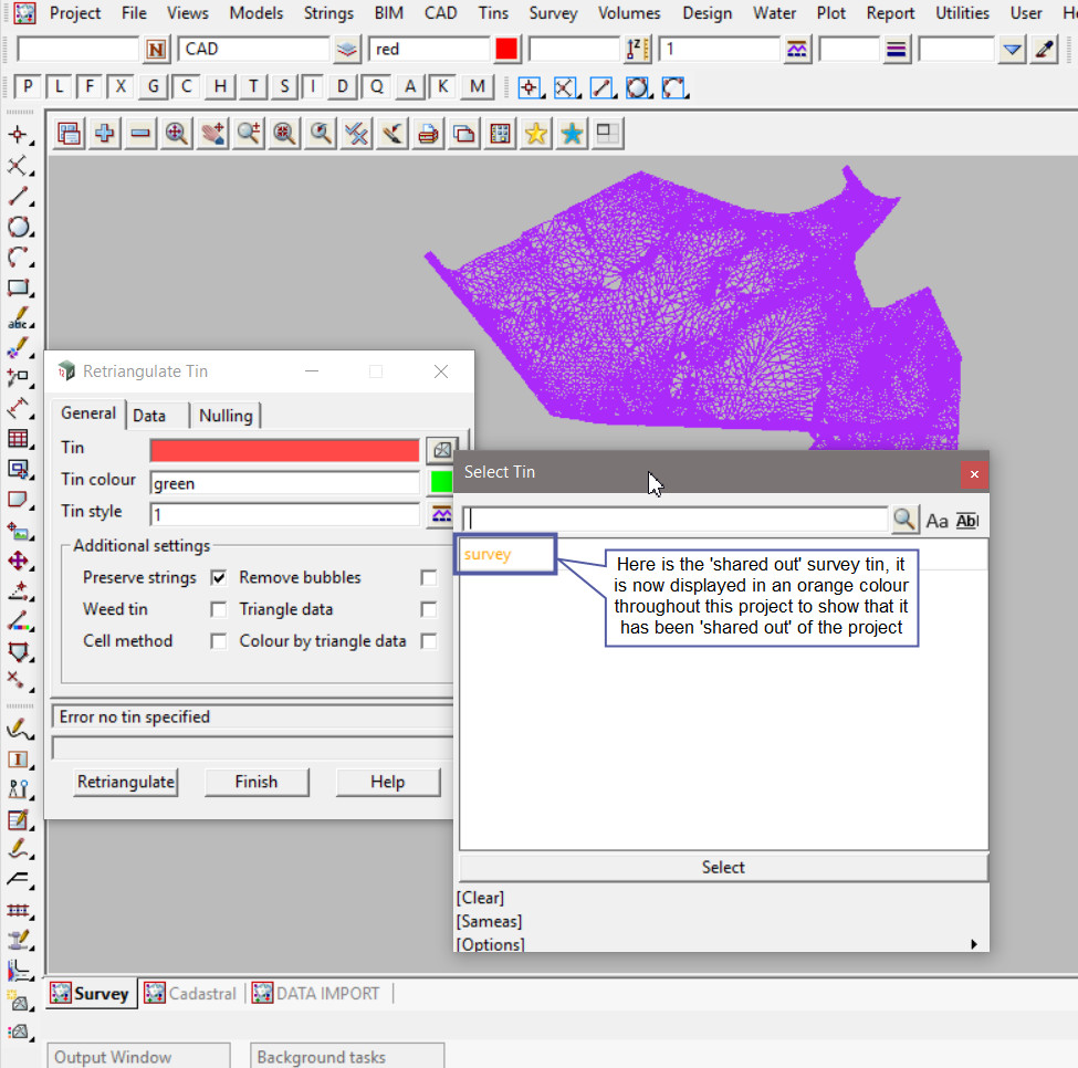 As shown below the ‘survey’ tin will now be displayed as ‘orange’ in colour throughout this project to tell the user/s that it has been shared out of the project.