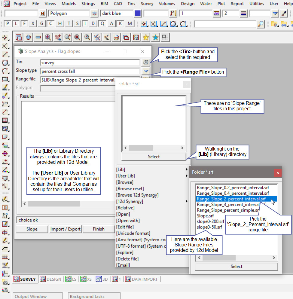 Pick the <Range File> button and then walk right on the [Lib] (Library) directory, and select the ‘Range_Slope_2_Percent_Interval.srf’ file.