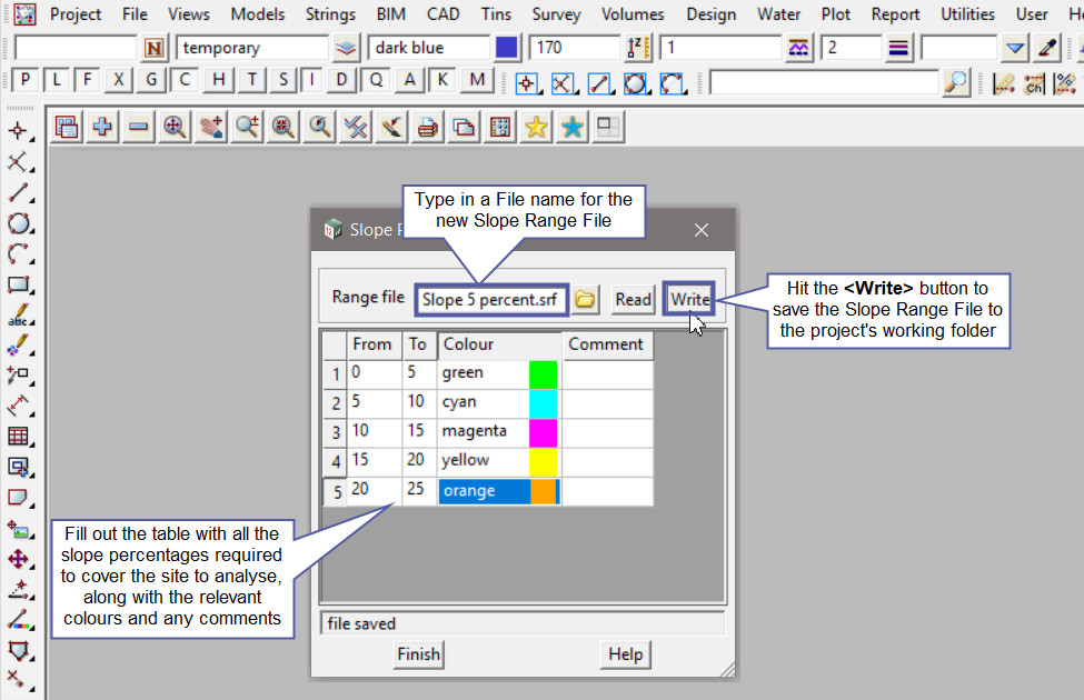 Then hit the <Write> button to save the Slope Range file, at the moment it will be saved to the current project’s working folder.