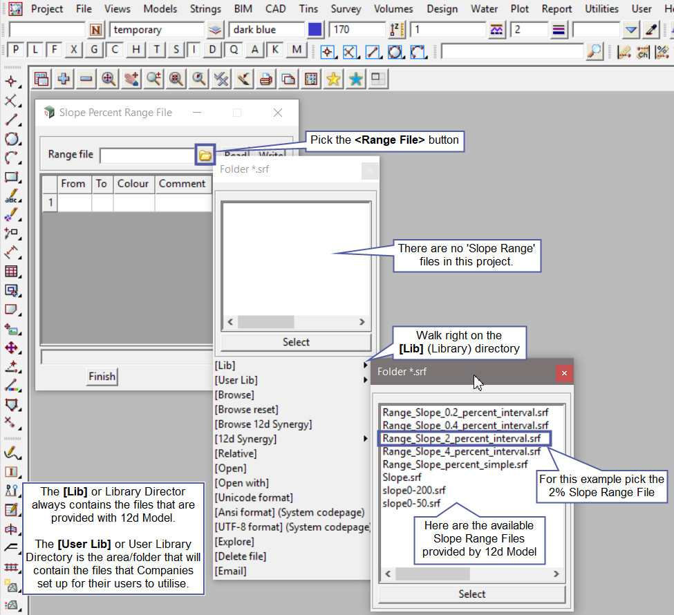 Pick the <Range File> button and then walk right on the [Lib] (Library) directory, and select the ‘Range_Slope_2_Percent_Interval.srf’ file.