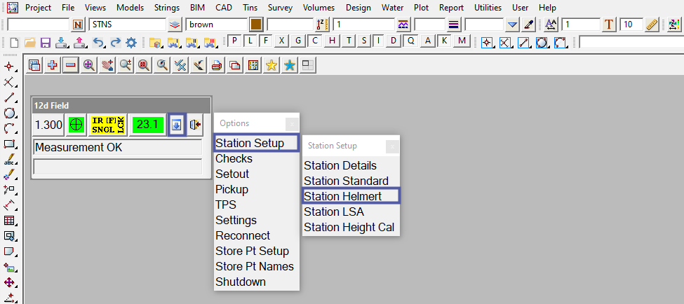 To view the 12d Field – Helmert Resection panel, Use: Show Options => Station Setup => Station Helmert