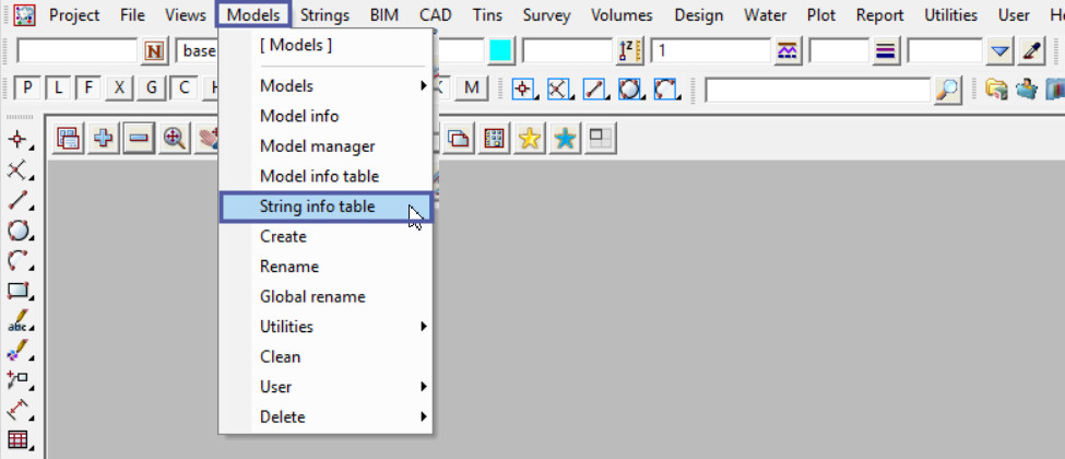 This option is used to display all the strings in a selected model in the project. The information is displayed in a table format and can be sorted by columns.