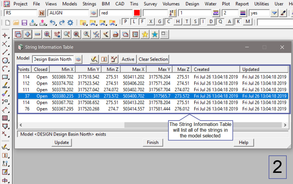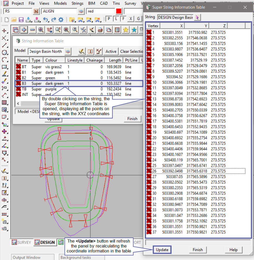 By double clicking on the selected string, another String Information Table is opened and it will list all the vertices/points for the string. The details are as shown below: