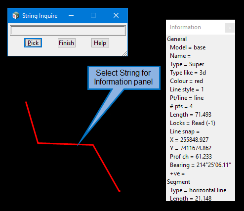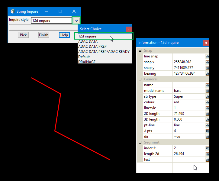 The image above is the standard “String Inquire” option provided by default from 12d Model Software.