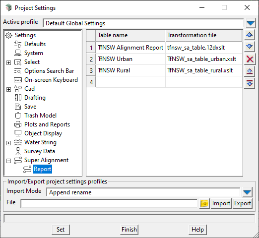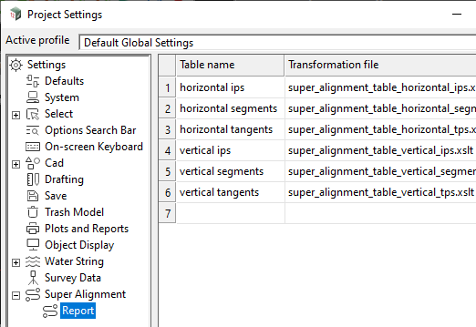 and then under Super Alignment > Report you will see a list of Table Formats that have been saved to the current project.