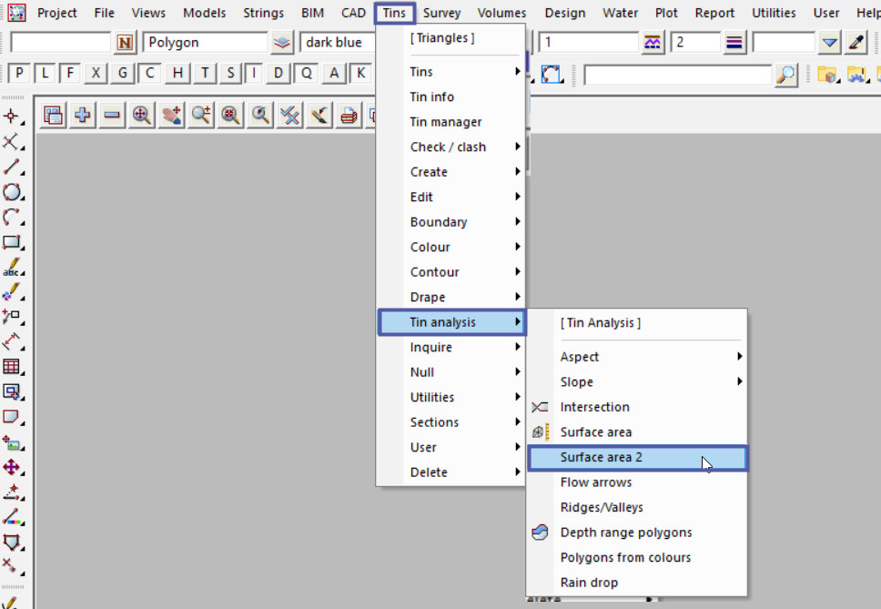 To view the Surface Area 2 Panel, Use: Tins => Tin Analysis => Surface Area 2