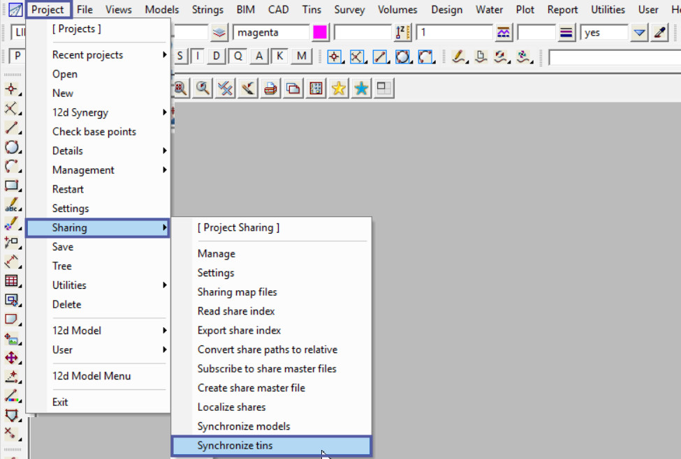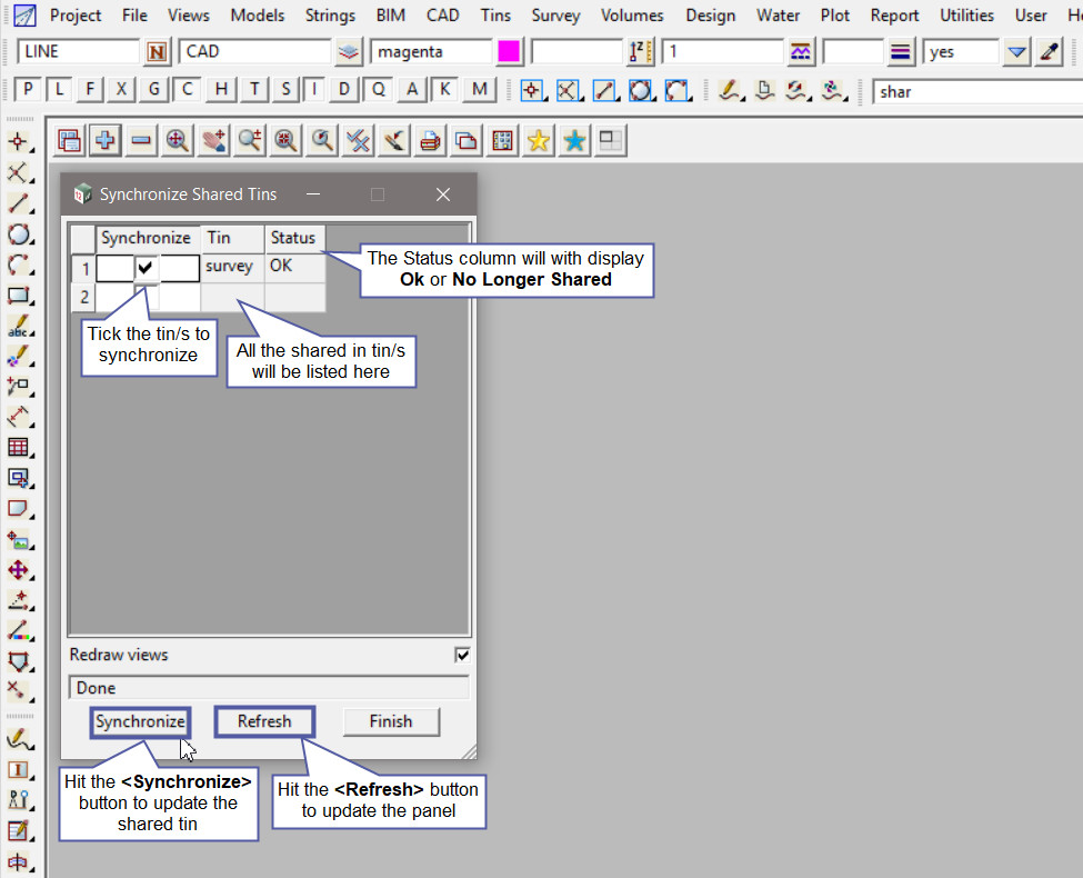 The Synchronize tin option is used to update any already ‘shared in’ tins in the project.