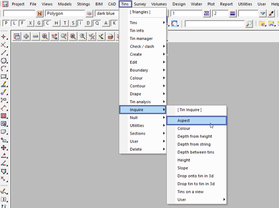 This option is used to display the aspect (direction) details of the triangles in a Tin in the project.