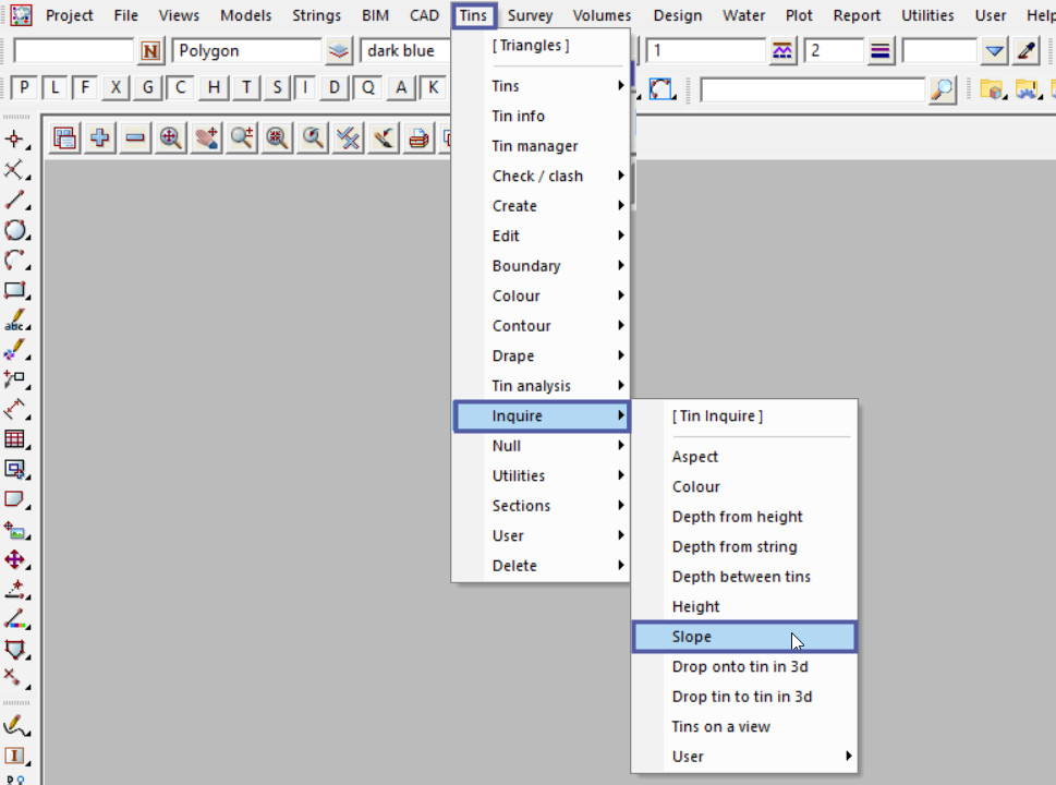 To view the Tin Slope Inquire Panel, Use: Tins => Inquire => Slope