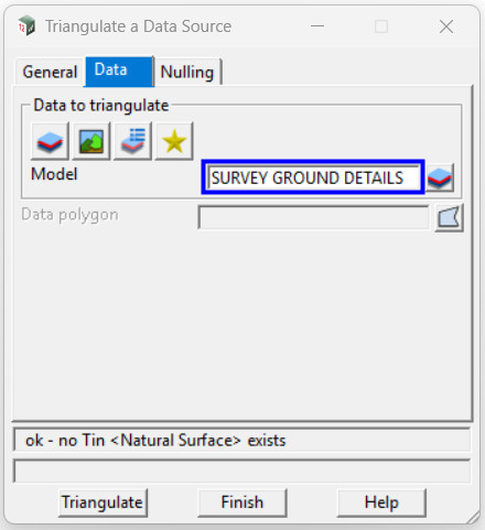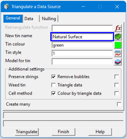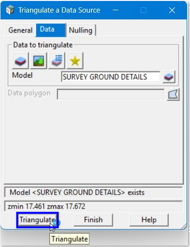 - Tin ⇒ Create ⇒ Triangulate Data