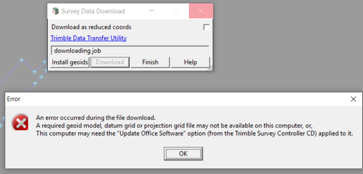 Then you try to download the raw survey in this case a .JOB file using Trimble Link by going to Survey => Download Raw
