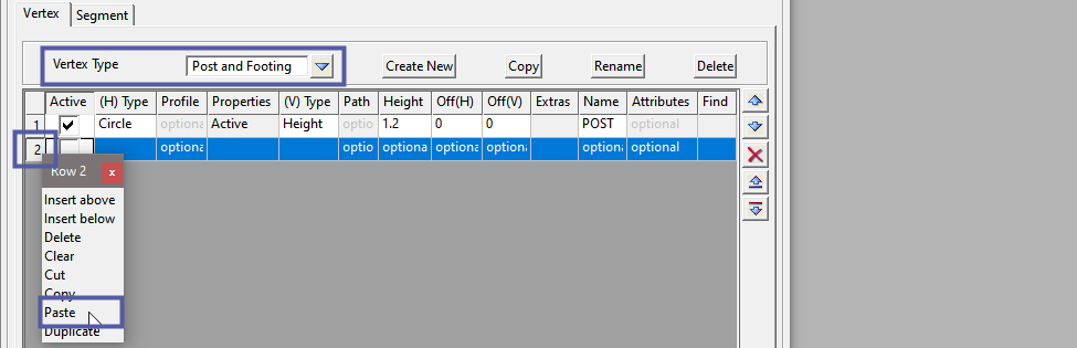 Change to the Vertex Type: Post and Footing