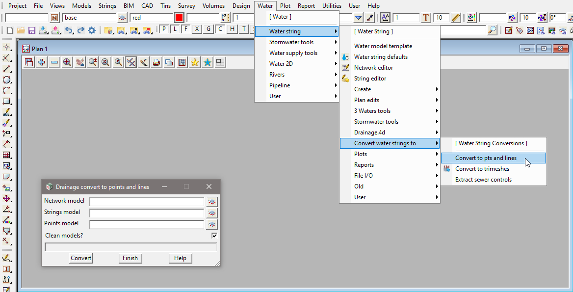 This option is used to convert 12d Water (Drainage) Strings into individual Points and Lines for each Node and Link within the network.
