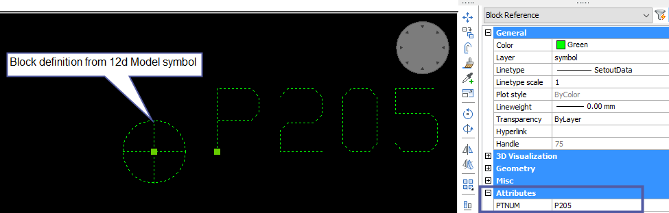 The attributed Block as it appears in the DWG.